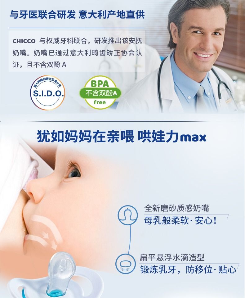 Chicco Italian Mother And Child Import Heart-Shaped Bionic Silicone Pacifier 2 Sets 0-6M Blue